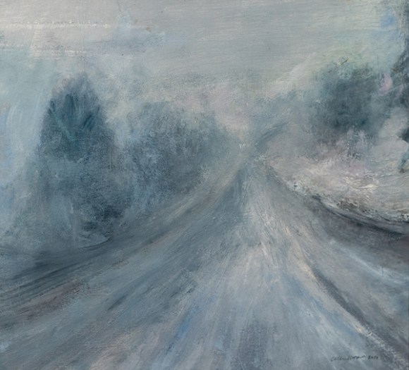 Ellen Wong Paintings and Works on Paper: Living in Nature, finds me painting the ordinary world around me. Nature, HERE, is still the subject and my inspiration. Newer work finds me closer to home, even inside at times, peering out my windows, working from observation and seeing, feeling and responding. Revisiting some of the same places which are always changing depending upon the seasons, time of day, weather and my own changing atmosphere, to see the commonplace anew. There is a quiet solitariness, an unpeopled landscape, encounters with deer, and cows, birds and sheep.